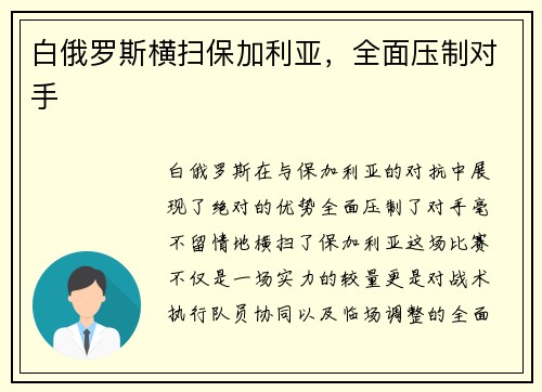 白俄罗斯在与保加利亚的对抗中展现了绝对的...