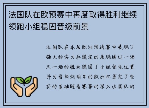 法国队在本届欧洲预选赛中展现了强大的实力...