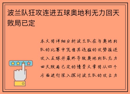 本文将详细分析波兰队在与奥地利队的比赛中...